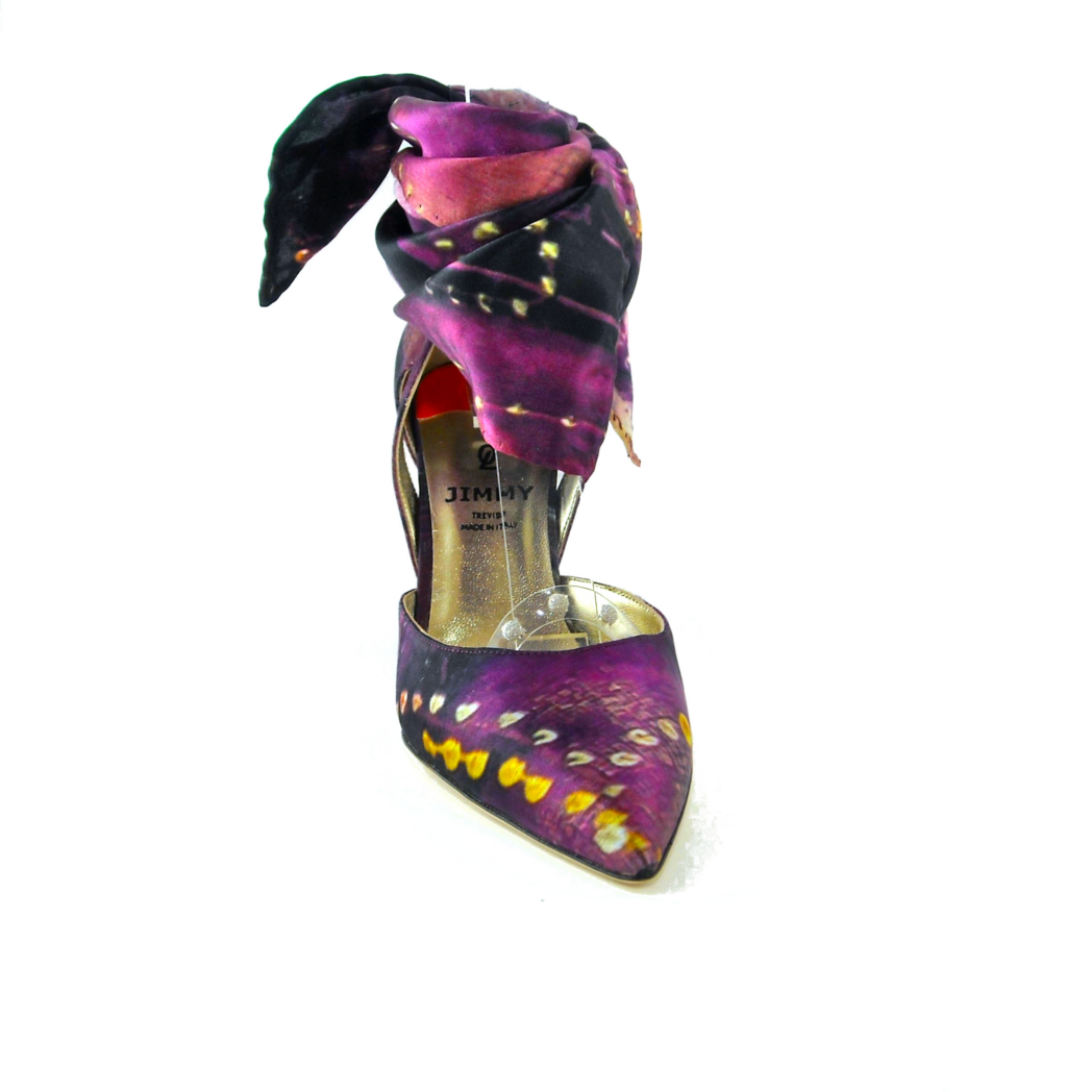 Un connubio di arte, lusso e sartorialità. La décolleté Giovanna è realizzata in edizione limitata con un esclusivo foulard in pura seta dipinto a mano dall’artista Paola Zannoni, intitolato “Tra Mistero e Magia”. Ogni modello è unico, trasformando la scarpa in una vera opera d’arte da indossare.